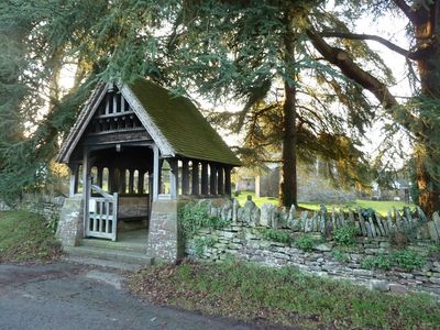 Lychgate to parish church, Grade II listed building in Monmouthshire. Situated to SE of parish church, in churchyard wall