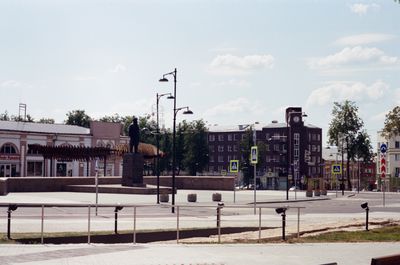 Piazza Lenin mantiene installazioni originali in pietra del periodo sovietico, inclusi elementi commemorativi che documentano lo sviluppo industriale della città.