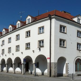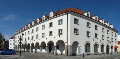 Herecké domy, houses No 1 and 3 in Jirsíkova Street and No 1 in Široká Street in České Budějovice, Czech Republic