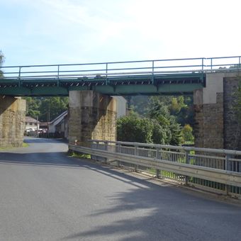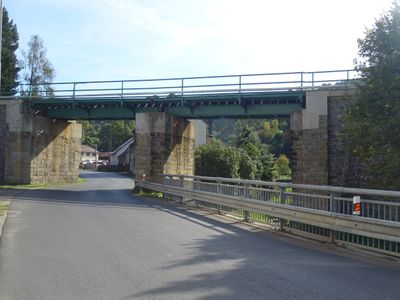 Železniční most přes Palackého ulici a Bystrou v Benešově nad Ploučnicí, railway bridge in Czech Republic