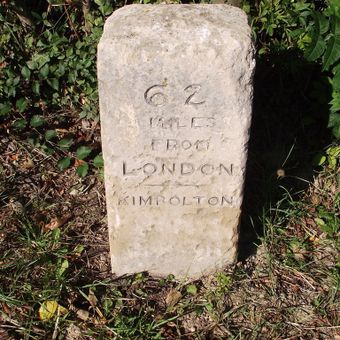 Milestone Outside Milestone Cottage, milestone in Kimbolton, Huntingdonshire, Cambridgeshire, UK