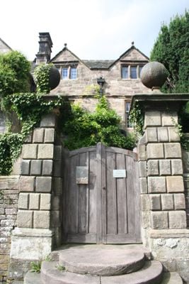 Front garden wall and gate piers of Riber Hall, Grade II listed building in Riber, Matlock Town, Derbyshire Dales, Derbyshire, DE4