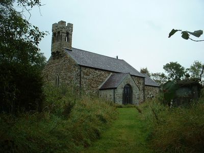 Church of St Lawrence, grade II listed building in Jeffreyston, in churchyard, on corner of lane. To NE of Yerbeston Farm