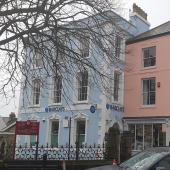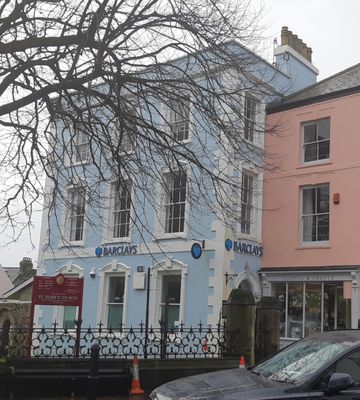 Barclays Bank, Grade II listed building in Pembrokeshire. On the SW side of the High Street, facing and just W of the Church of Saint Mary in Liberty