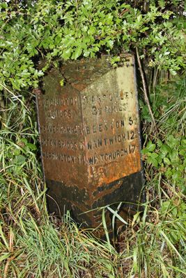 Milepost, Abbot's Moss, opp. Shay's Lane jct, milepost in Oakmere, Vale Royal, UK