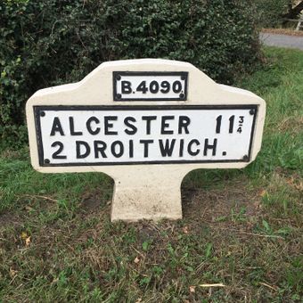Milestone, Woolmere Green, Saltway, 5m in front of "Hanbury" sign