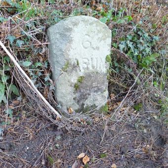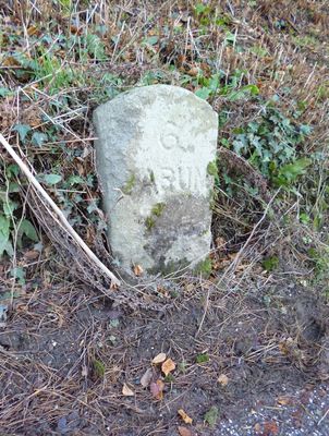 Milestone, Budd's Wood, 500m W of Chelfham viaduct, on riverside road