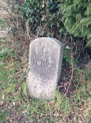 Milestone, up hill from village, 300m E of "The Orchards"