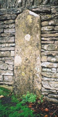 Milestone, Station Road; opp. Church, in boundary wall of Stoneleigh House, milestone in Brize Norton, West Oxfordshire, UK