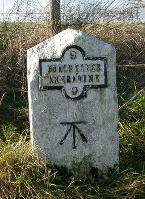 Milestone, near jct with the 'Old Sherborne Road' at Middlemarsh; opp. small road that joins old and new roads.