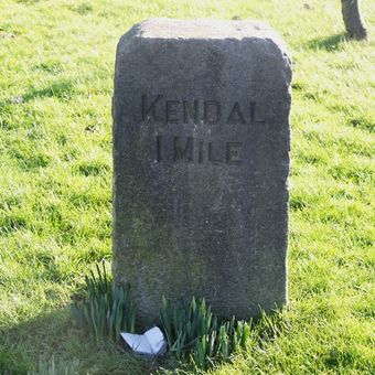Milestone, Windermere Road, at top of hill out of Kendall, by Airey's Folly, milestone in Kendal, South Lakeland, UK