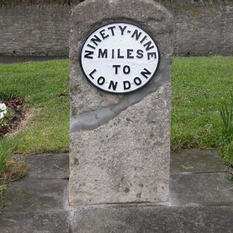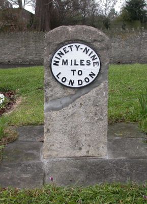 Milestone, Hilperton Road, jcn Roundstone Street, milestone in Trowbridge, West Wiltshire, UK