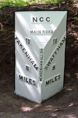 Milepost, S of N edge of New Wood, milepost in Weasenham All Saints, Breckland, UK