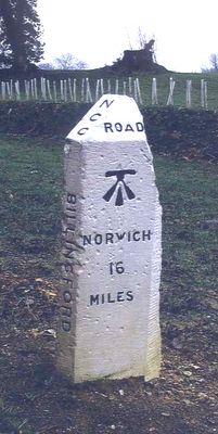 Milestone, 40yds E of entrance to High House Farm, milestone in Billingford, Breckland, UK