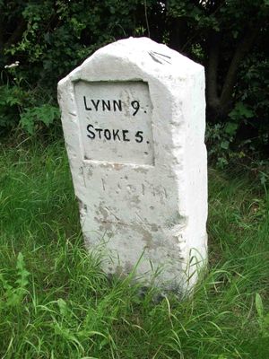 Milestone, roadside at TF6617805997, milestone in Stradsett, Kings Lynn And West Norfolk, UK