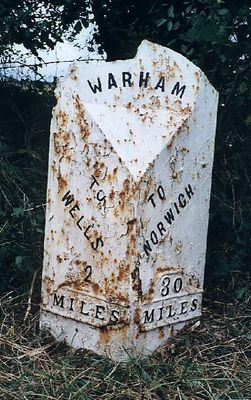 Milepost, 170yds S of Grove Farm, milepost in Warham, North Norfolk, UK