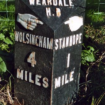 Rogerley Hall, Frosterley, milepost in Stanhope, Wear Valley, UK