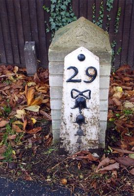 Milestone, Halsford Green, S of Felbridge, milestone in East Grinstead, Mid Sussex, UK