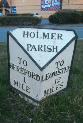 Milepost, Holmer Road, opp. warehouse, milepost in Hereford, Herefordshire, UK