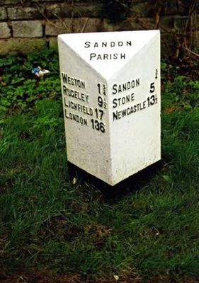 Milepost, Sandon village, close to A51 jct at SJ94752968