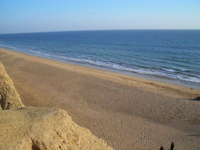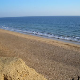 La spiaggia si forma alla giunzione tra una catena montuosa bassa e il Mar Arabico, creando una penisola triangolare con punti panoramici elevati.