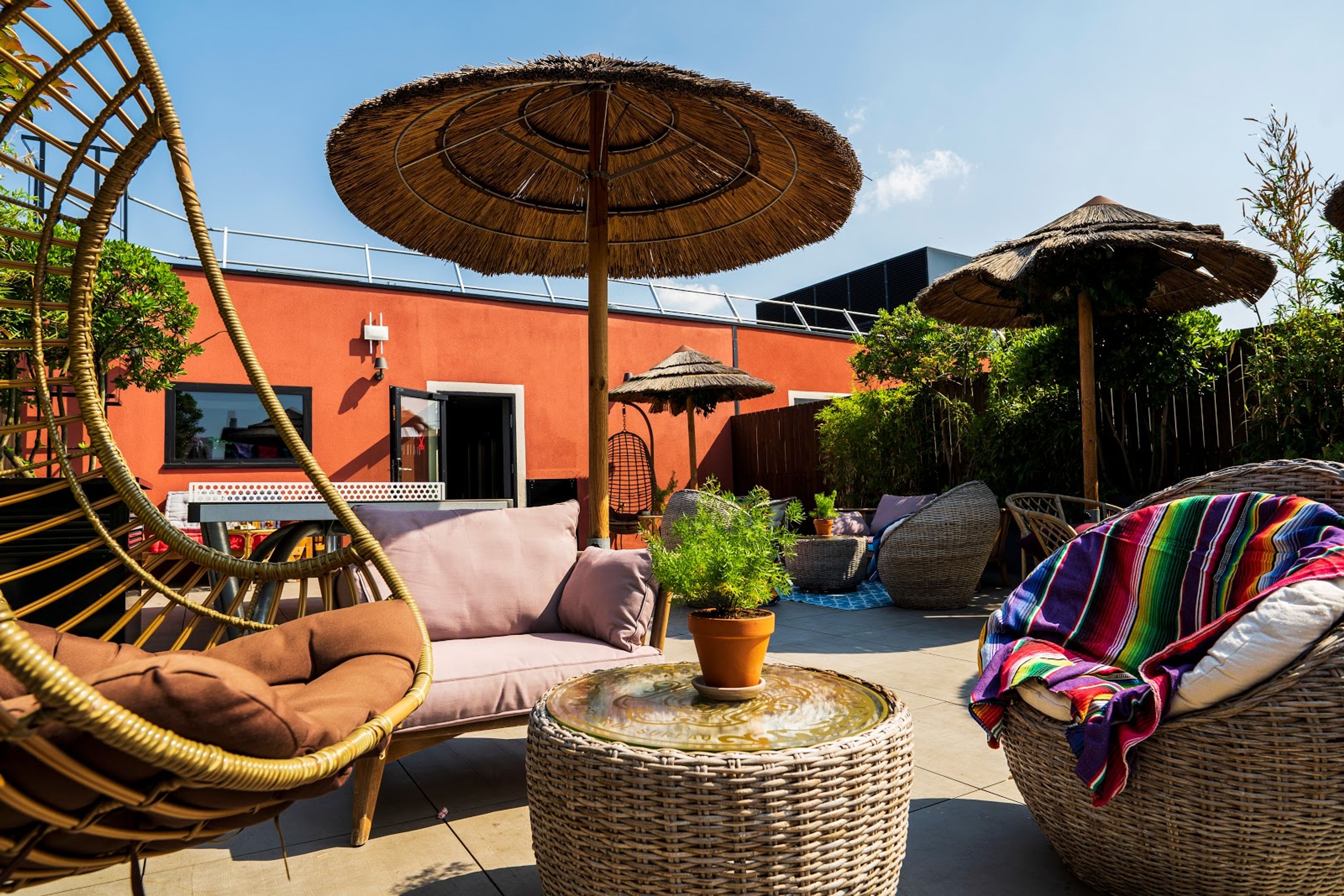 Ogni camera include uno smartphone con accesso a internet e un letto ad aria, mentre la struttura dispone di calcio balilla gigante.
