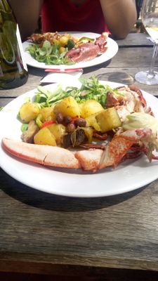 Il ristorante serve piatti di aragosta e pesce fresco abbinati a vini locali all'interno di un castello storico.