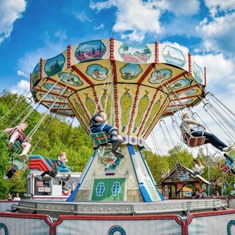 Oskarshausen si estende su 15.000 metri quadrati e presenta oltre 50 diverse attrazioni, tra cui una torre di caduta libera di 16 metri.