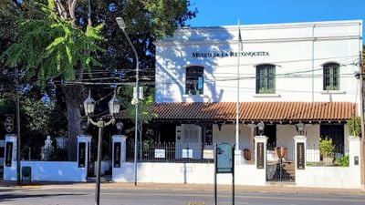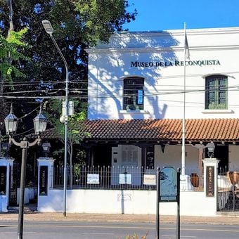 Il Museo de la Reconquista si trova in un edificio di stile coloniale a due piani con doppi muri esterni in mattoni grandi e finestre con sbarre.