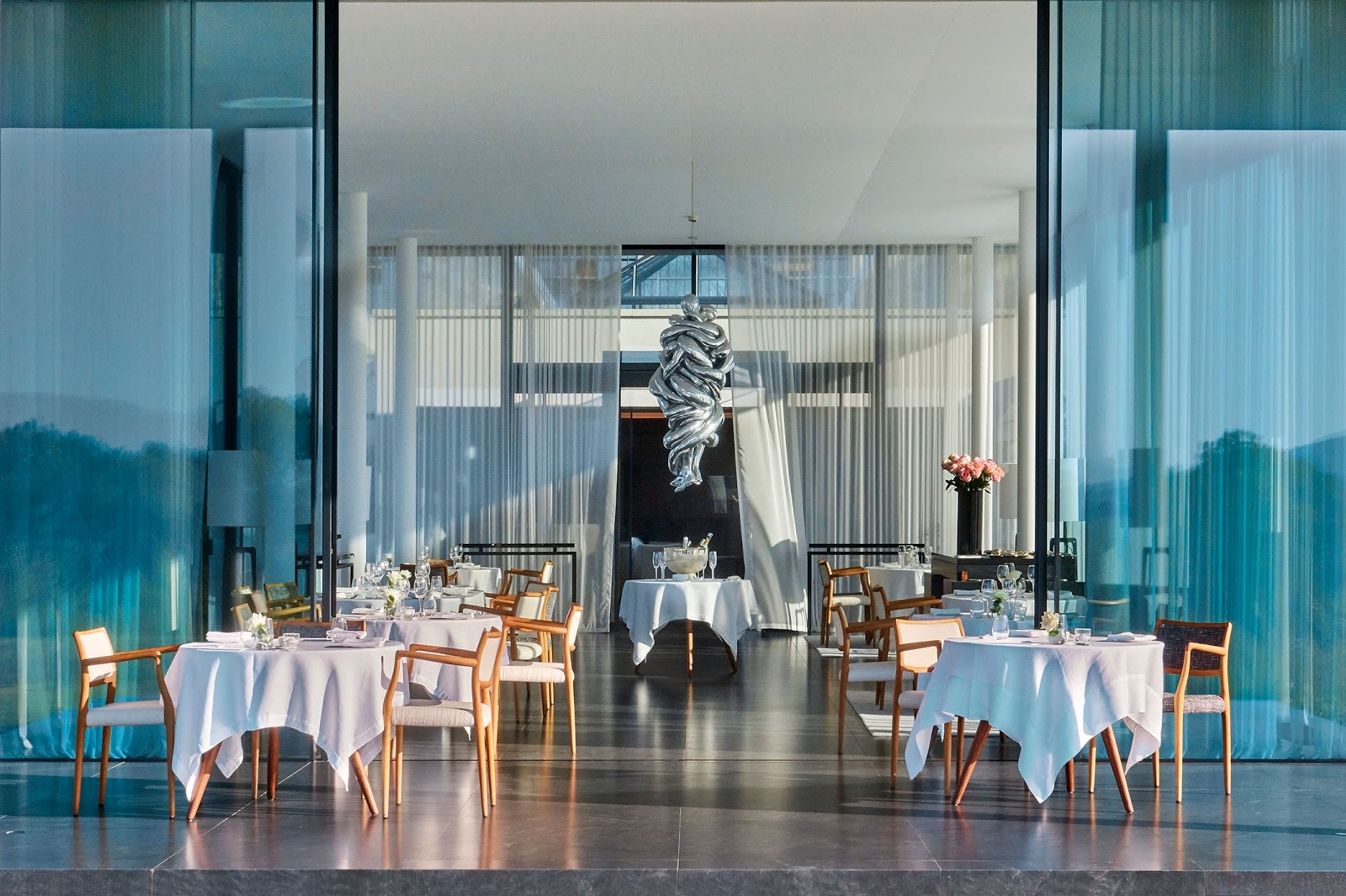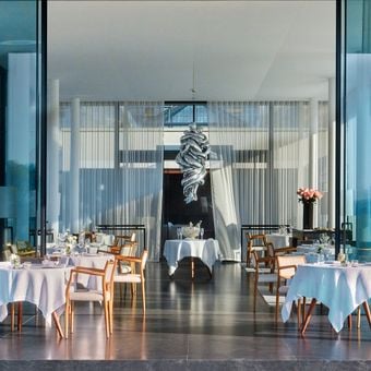 Il ristorante si trova in un edificio contemporaneo all'interno di Villa La Coste, con viste panoramiche sui vigneti e sulle colline provenzali.