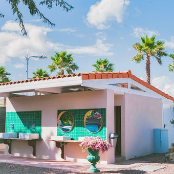 La struttura comprende un ristorante con vista mare e un campeggio a tre stelle con 200 piazzole per tende, roulotte e camper.
