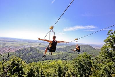 Il parco presenta un sistema di zipline doppia di 1,5 chilometri che permette a due partecipanti di gareggiare simultaneamente attraverso la volta forestale.