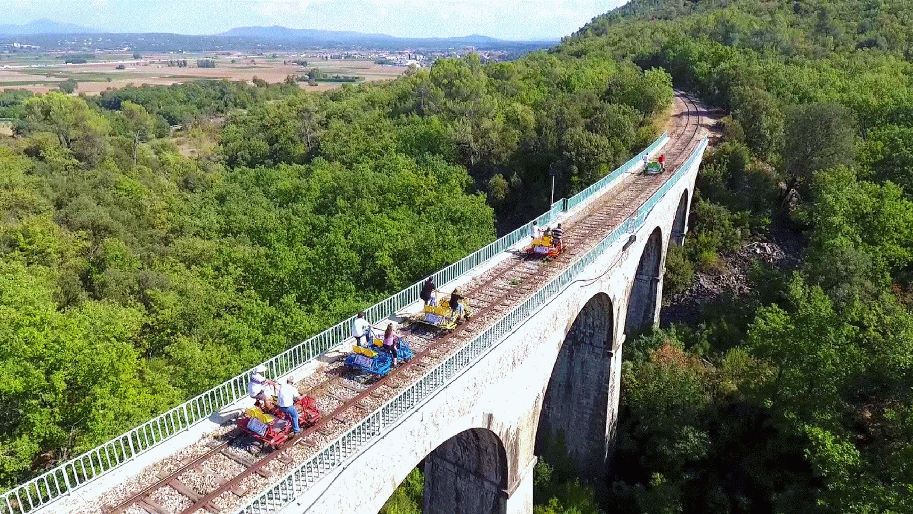 I partecipanti pedalano su due viadotti elevati a 20 metri di altezza, con vista sulla valle della Provenza e sui vigneti circostanti.