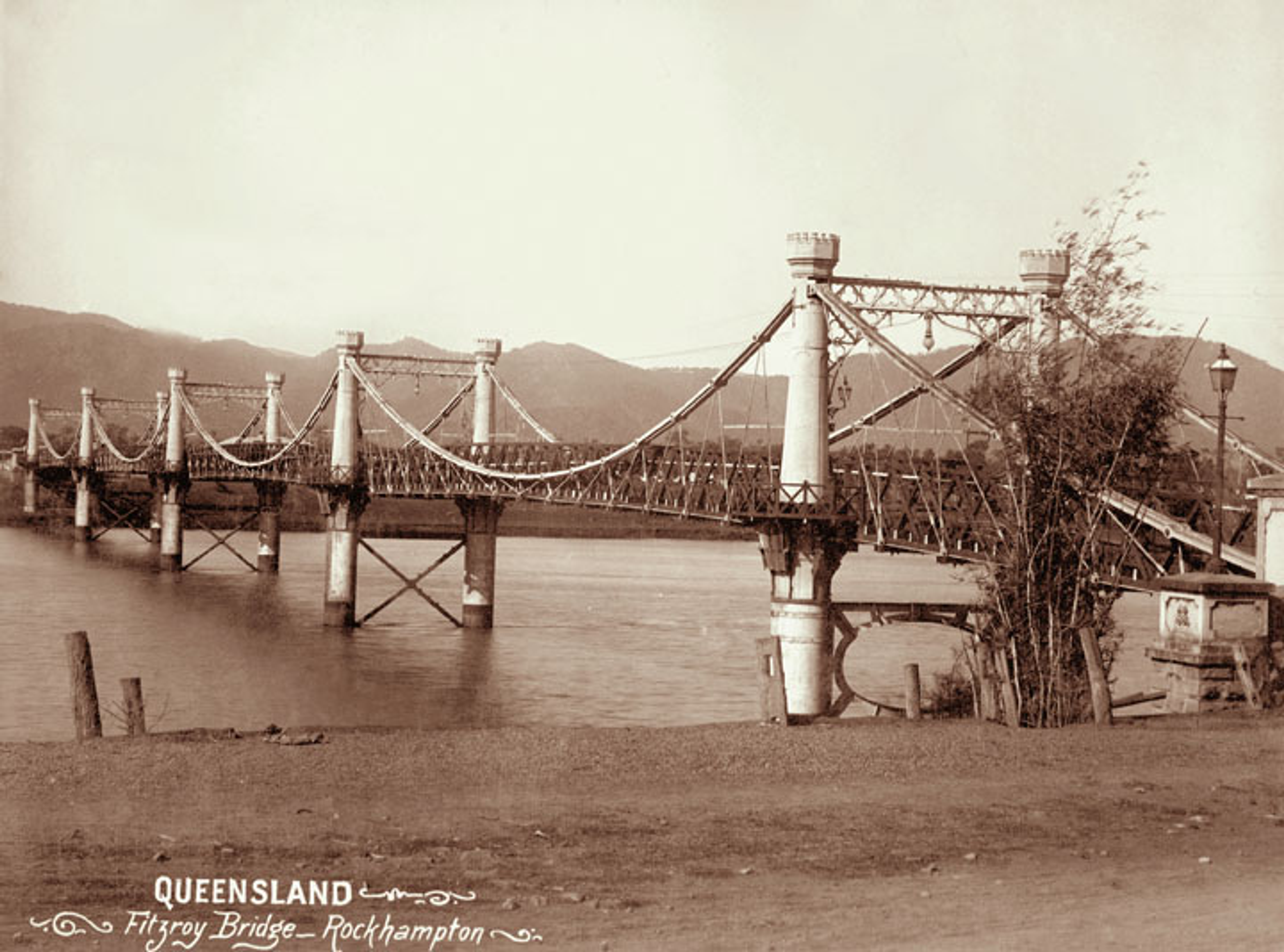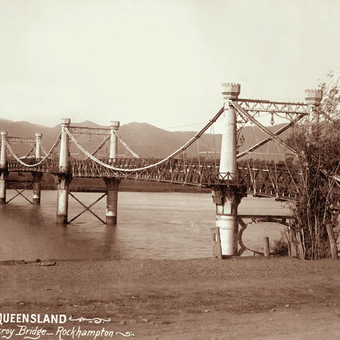 Il ponte sospeso originale, costruito nel 1881 al costo di 54.000 sterline, fungeva da primo attraversamento fluviale di Rockhampton fino alla demolizione nel 1956.