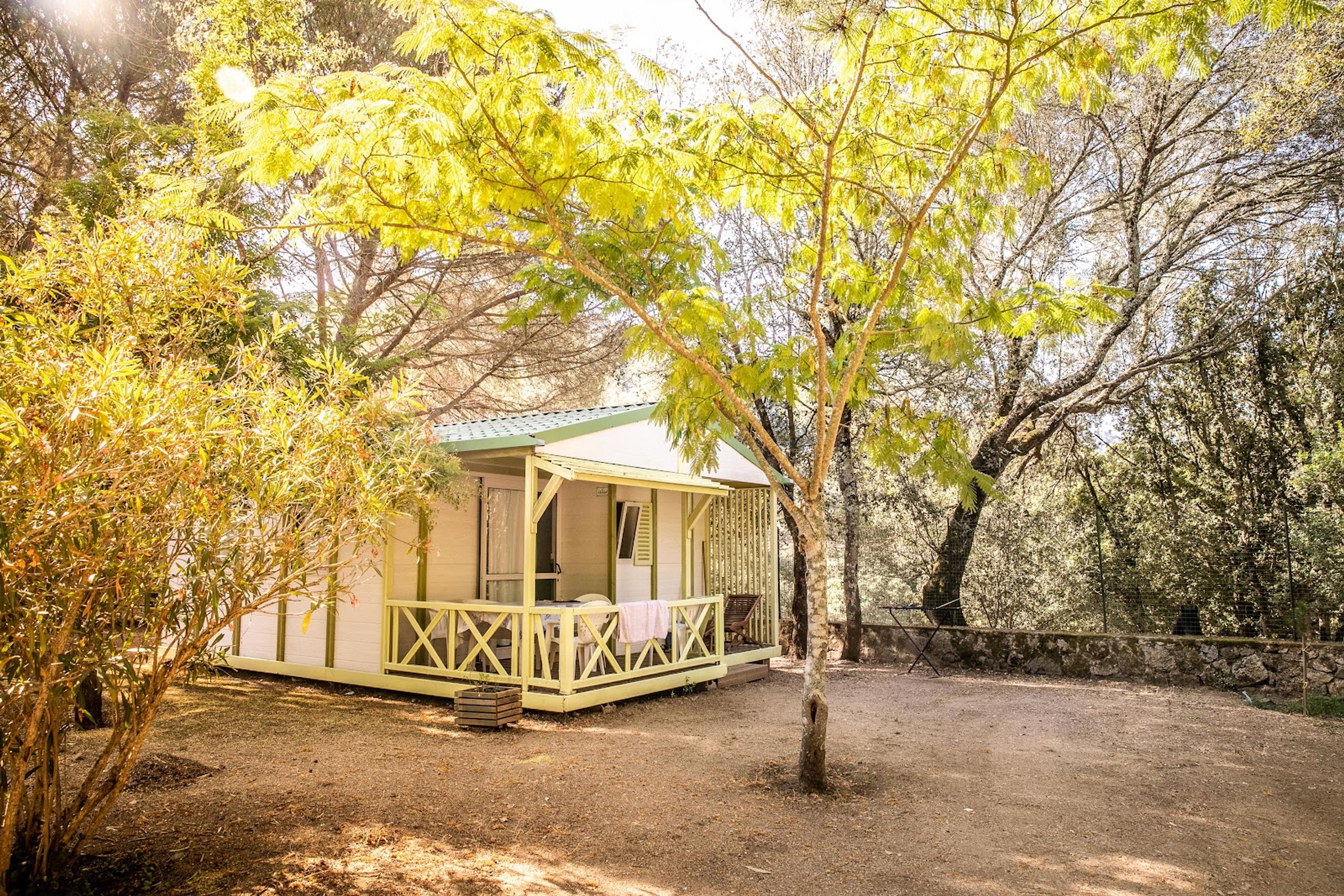La Corsica offre una rete di campeggi lungo la sua costa mediterranea, dalla Balagne a nord fino alla estremità meridionale. Queste strutture si trovano principalmente a Porto-Vecchio, Calvi, Ajaccio, Ghisonaccia e Sagone, consentendo di esplorare diverse zone dell'isola. I siti si estendono su diversi ettari, spesso piantati con ulivi e piante di pino marittimo che forniscono ombra naturale alle piazzole. Le strutture includono piscine esterne, talvolta riscaldate o alimentate con acqua di mare, ristoranti con prodotti locali, campi sportivi e aree giochi. Alcuni campeggi come Merendella sono situati in antichi oliveti di sette ettari, mentre altri come il campeggio de La Pinède si affacciano direttamente sulla spiaggia. Le soluzioni di alloggio variano da piazzole per tende e caravan a mobile home dotati di aria condizionata e terrazze, con superfici fino a 100 m². La maggior parte delle strutture si trova a breve distanza dal litorale, alcune a meno di 200 metri dalle spiagge di sabbia.