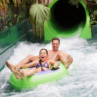 Il Topsy Turvy è uno scivolo lungo e contorto dove i passeggeri si siedono in barche rotonde e scendono attraverso tunnel scuri, creando un'esperienza emozionante diversa dagli altri scivoli del parco. Questa attrazione si distingue per la sua lunghezza e l'adrenalina che fornisce mentre la barca si contorce attraverso le sezioni coperte.