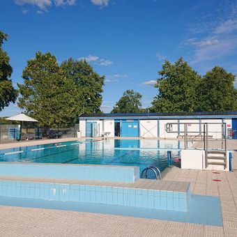 Il complesso della piscina estiva comprende diverse aree acquatiche, spiagge erbose, campi da pallavolo e zone dedicate alle diverse attività.