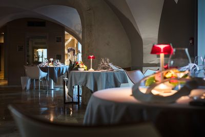 La struttura ospita sia un ristorante gastronomico che il Bistr'AU, offrendo due esperienze culinarie all'interno della stessa proprietà storica.
