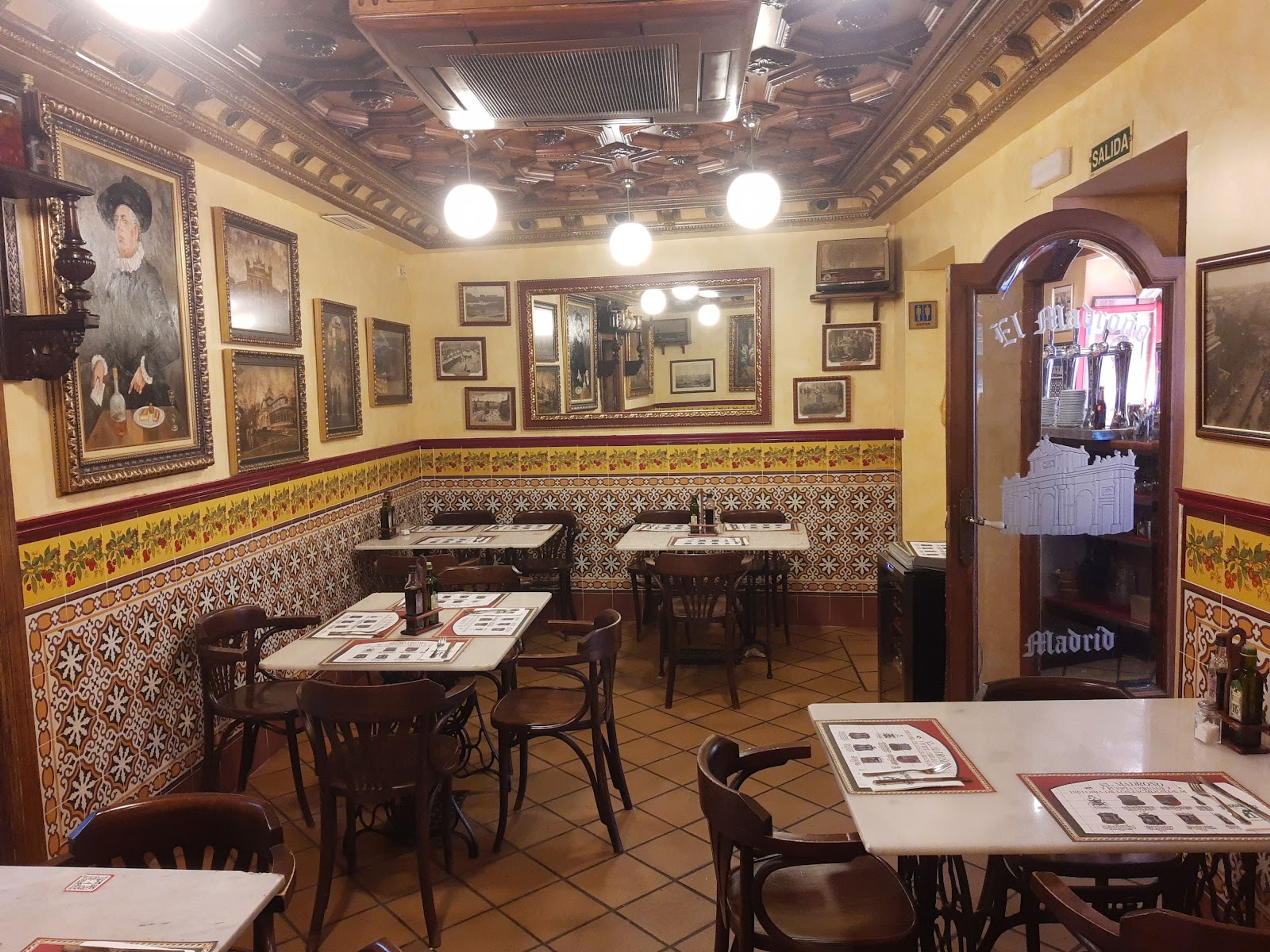 Il ristorante rappresenta la cultura delle tapas madrilene servendo piatti classici come i callos con vini regionali e birre alla spina.