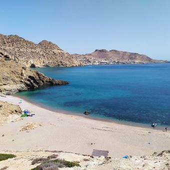 La spiaggia presenta formazioni rocciose naturali che creano piccole calette protette dove si radunano diverse specie di pesci mediterranei.