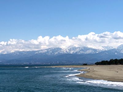 La spiaggia si estende per un chilometro lungo la baia di Toyama, con una fascia di sabbia di 50 metri circondata da pini giapponesi.