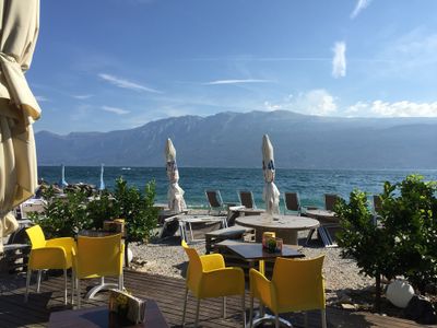 La combinazione delle acque del lago e dello sfondo montano crea condizioni di temperatura che supportano la coltivazione degli agrumi vicino alla spiaggia.