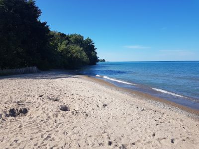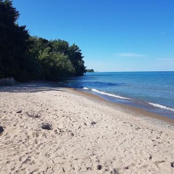 La spiaggia Lighthouse si estende lungo il lago Michigan, offrendo ai visitatori 180 metri di sabbia fine e acqua limpida per il nuoto.