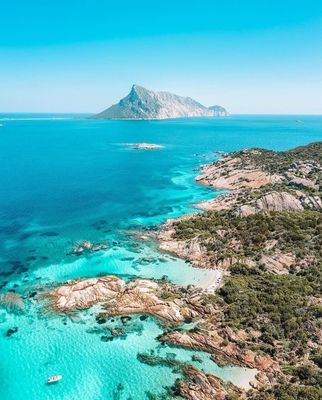 La posizione della spiaggia offre una vista diretta sull'isola di Tavolara, una montagna calcarea che si eleva per 564 metri dal mare.