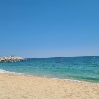 La spiaggia si estende per 347 metri lungo la Costa del Maresme, con sabbia dorata e acque limpide adatte al nuoto e alle attività acquatiche.