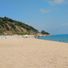La spiaggia si estende per 270 metri lungo la costa mediterranea, con sabbia dorata grossa e acque cristalline accanto agli edifici residenziali.