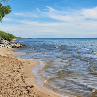 La spiaggia Southwick si estende per 1067 metri lungo il lago Ontario, caratterizzata da dune naturali e acque limpide per la balneazione.