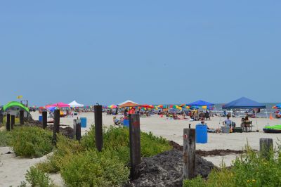 Questa sezione della costa di Galveston funge da spazio di ritrovo per eventi comunitari, inclusi tornei di pallavolo e competizioni di costruzione di castelli di sabbia.