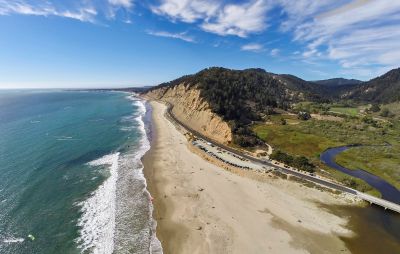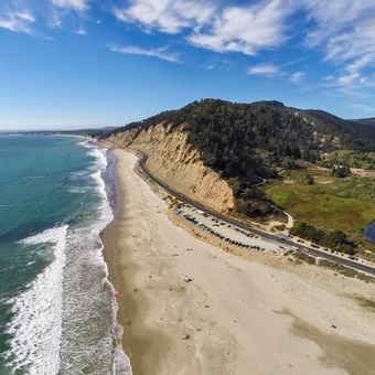 Waddell Beach si estende per 2,4 chilometri lungo la costa del Pacifico, con un ampio litorale sabbioso alla foce del torrente Waddell.