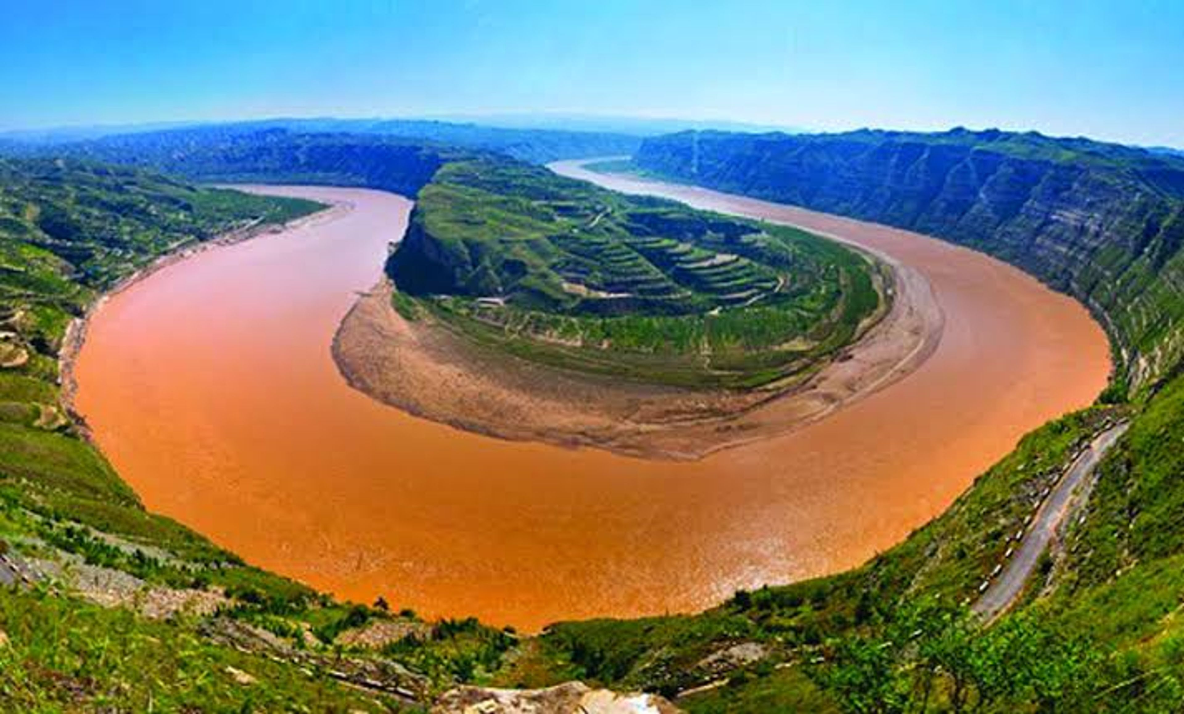 Il Fiume Giallo attraversa Jinan con una larghezza di 488 metri e trasporta grandi quantità di sedimenti di loess, conferendogli la caratteristica colorazione gialla.
